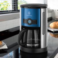 Современная капельная кофеварка Russell Hobbs Sky Blue Cottage 18590-56 обладает вместительным стеклянным резервуаром для кофе, объем которого составляет 1,8 литра. Этого достаточно для приготовления напитка на 12-18 чашек. Кроме того, кофейник оснащен удобной откидной крышкой